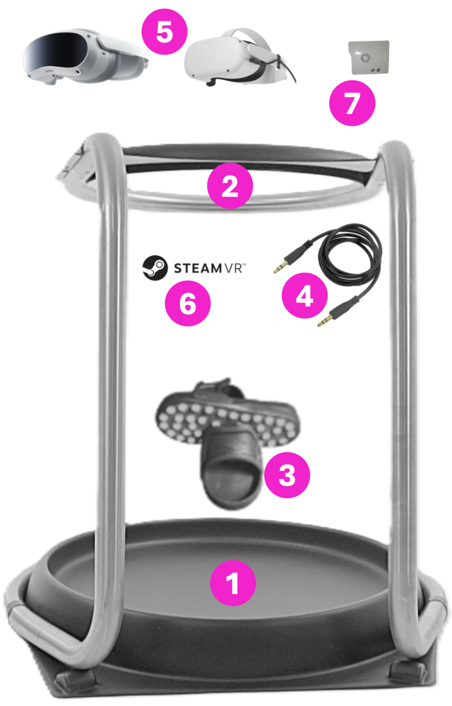Audio cable links to the audio card in your PC. A USB audio card also works providing a rugged solution to VR locomotion